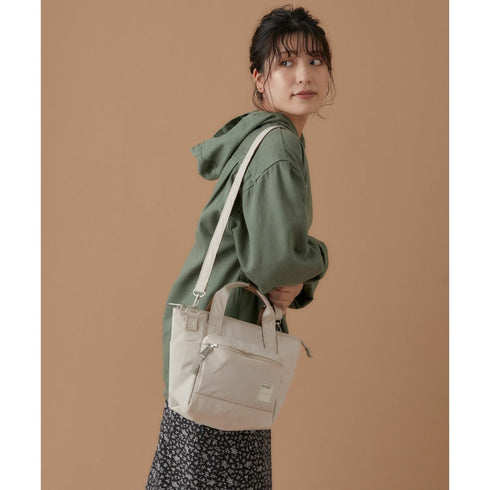 Through the use of cotton-like water-repellent fabric with a soft touch, the Anello Circle 2Way Mini Tote Bag provides a warm and gentle impression. Its synthetic leather pulls are accented for an elegant finish. Moreover, the bag is just the right size to hold a 500ml PET bottle and has plenty of pockets. Conveniently, it can be used as either a shoulder or tote bag.