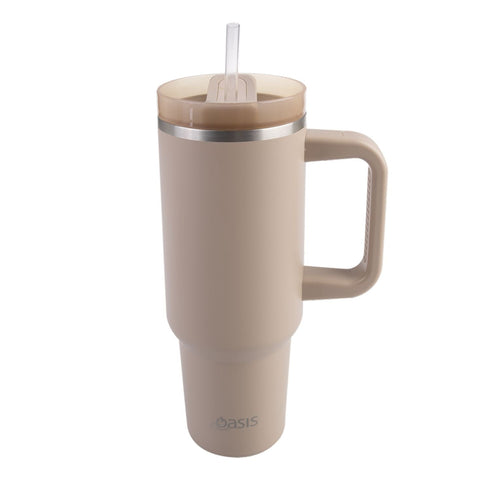 Stay hydrated while on-the-go with the Oasis 1.2L Commuter Travel Tumbler. Specifically designed with an ergonomic soft-grip handle and a recessed base, suitable to fit most standard car cup holders, the Commuter Travel Tumbler is the perfect vessel for your favourite beverage on your daily commute. Keeping drinks cold for up to 12 hours or hot for up to 7 hours, this Travel Tumbler features a multifunctional, splash-proof lid with clever three-point revolving dial, allowing you to switch seamlessly between the removable Tritan straw, to open spout and then sealed, in 3 easy twists. Utilising a generous 1.2L capacity, the Commuter Travel Tumbler will encourage you to effortlessly reach your daily hydration goals, while also choosing an environmentally conscious alternative to plastic bottles or disposable cups.