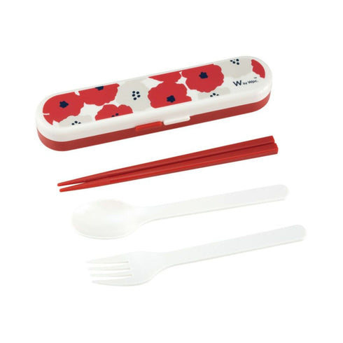 Printed with Wpc. original textile design, the design is the same as the lunch box and lunch pouch, so you can use them together. The chopsticks, spoon and fork can be stacked for compact storage and?tips of the chopsticks have a rough non-slip surface to make it easier to grab food.